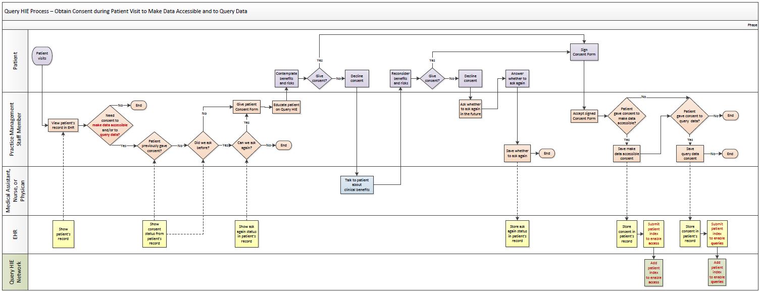 This tab presents workflow process maps and best practices for incorporating Query HIE functionality into the clinical and administrative processes. This content has been developed through the 2019 Query HIE Learning Collaborative.
