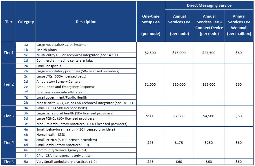 HIE services fees for Direct Messaging begin when a participant's connection to the Mass HIway production environment is verified.